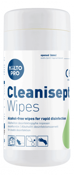 Desinfektiopyyhepakkaus ei-invasiivisten lääkinnällisten laitteiden ja välineiden pintojen puhdistukseen ja desinfiointiin. Sisältää 100 kpl rullasta repäistävää pyyhettä.