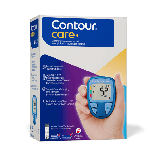 CONTOUR®CARE -yhdistettävä mittari ja testiliuskat. Verensokerin seurantajärjestelmä, joka on suunniteltu auttamaan diabeteksen hallinnassa helposti ja luotettavasti. CONTOUR®CARE -mittari ylittää ISO 15197:2013 standardin tarkkuusvaatimukset.^^